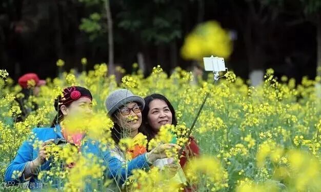 顺峰山公园里的油菜花开得很旺,一家三口来到这边,母亲拿着自拍干自拍,一边拍一边说,平时这边好多人拍照的,一张照片拍下来,花都被人给挡住了。不过现在下雨,一片泥泞,站都站不进去,还怎么拍呢!