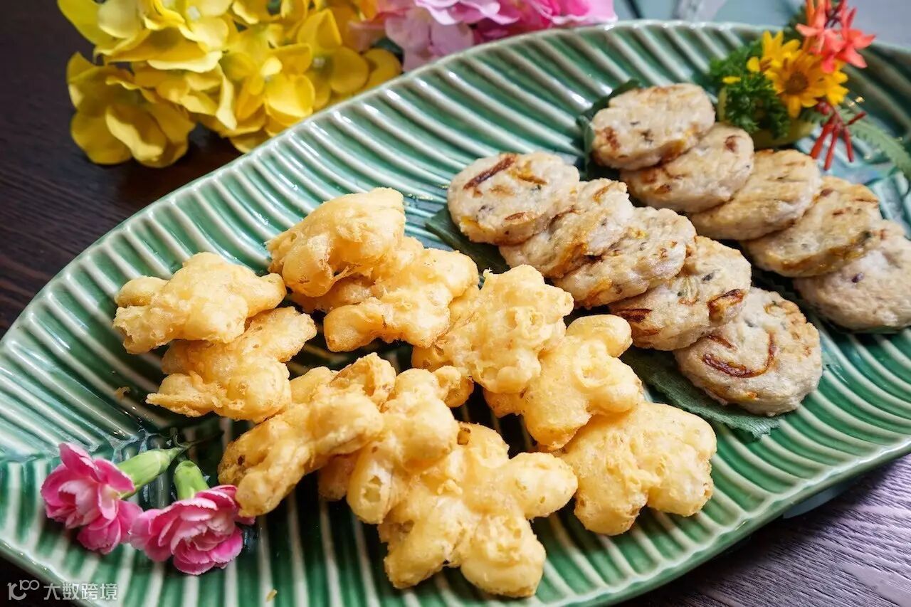 鸡蛋花蟹金拼菊花鱼饼 1份