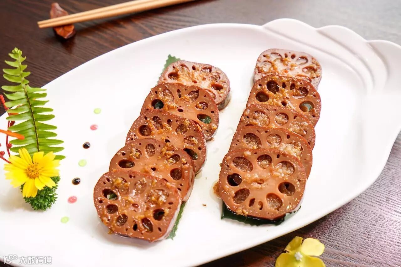 桂花糖莲藕是江南地区特色传统小吃,桂花风味浓郁,以莲藕、糯米、桂花为料制作。薄的藕夹含着糯软的米粒,恰到好处的口感正好解了酷暑的不适,缓解了夏天的食欲不振。