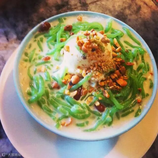 煎蕊,又称晶露已经成东南亚各民族美食的精髓,也是街边小贩和室内美食中心售卖率很高的食品。