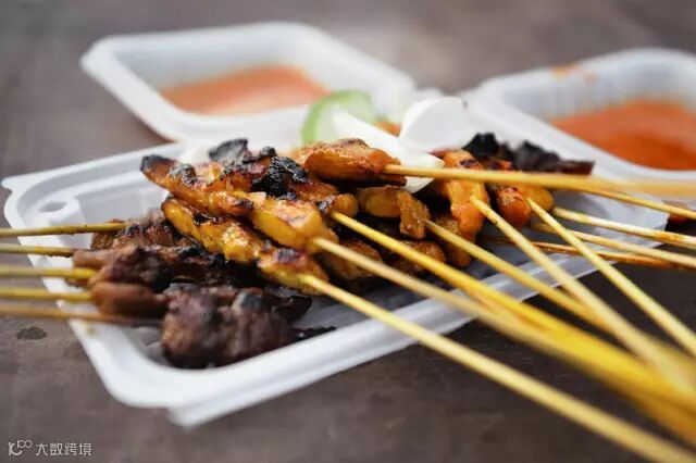 将腌制好的牛肉、鸡肉、羊肉在炭火上烤,配上甜中带辣的花生酱汁,再加上黄瓜、洋葱和Ketupat(马来饭团)一起食用,绝对是难以忘怀的味道!