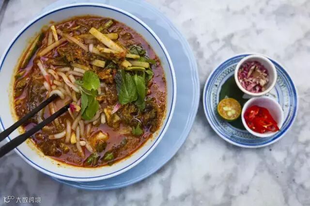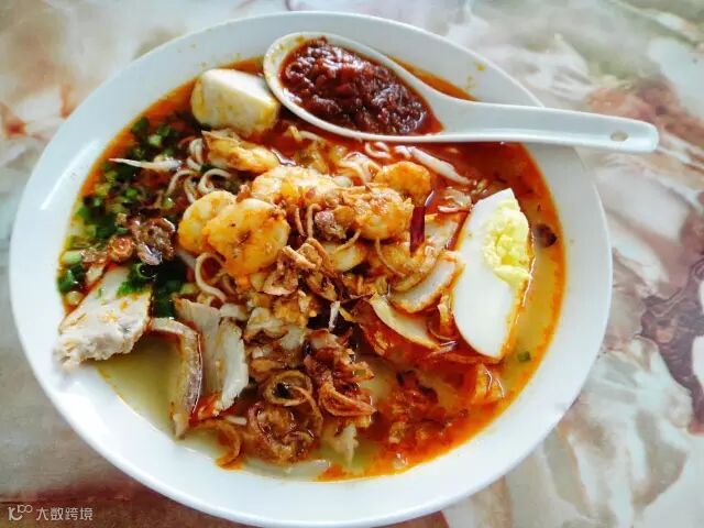 5.“Laksa”汤粉面地道南洋风味小吃,一种浓烈的香料椰奶虾酱汤,红遍东南亚的马来美食
