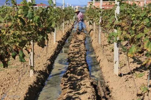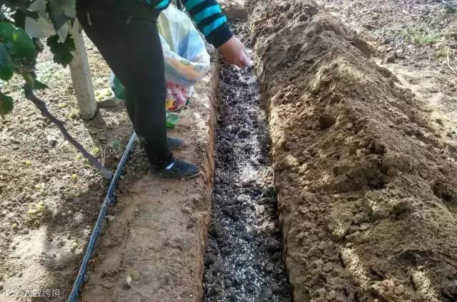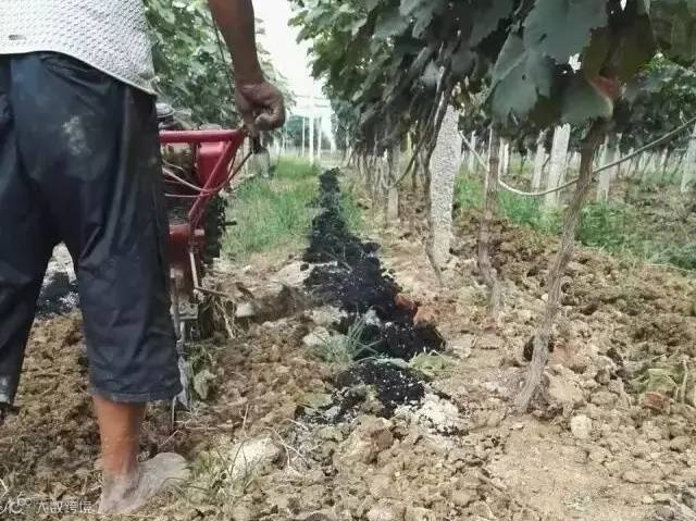 施用底肥一般采用两种方式,一种是开沟施入,一种是微耕机翻入,在目前葡萄市场低迷的背景下,微耕机翻入由于具有省工,省成本等方式,今年底肥施入采用此方法的更多,但微耕机翻入普遍面临底肥施用过浅的问题,在多地方甚至微耕机翻入只能达到5公分左右,这样就很难起到施用底肥的作用,如果提前浇一遍水,可以让开沟机,微耕机工作更加方便。