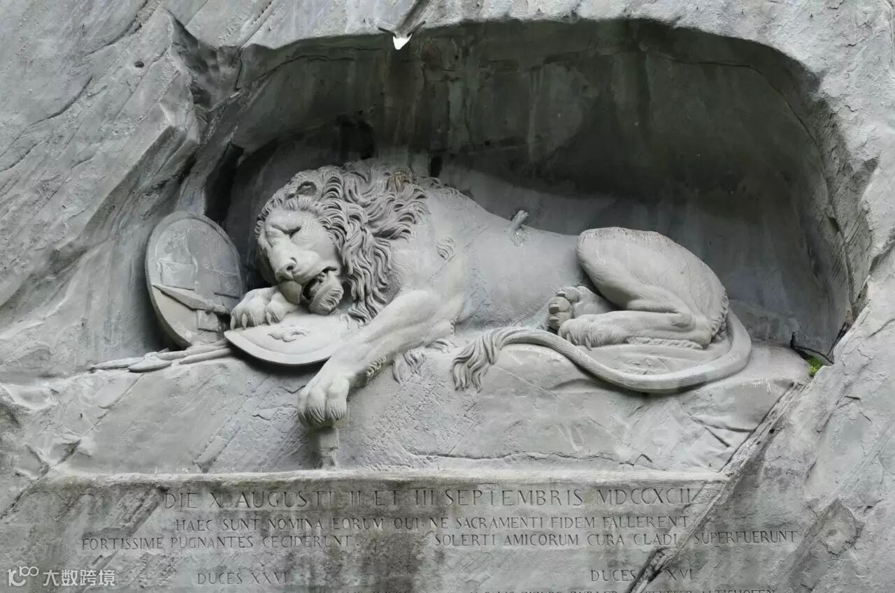 狮子纪念碑为了纪念在法国大革命时期因誓死保卫法国国王路易十六而战死的瑞士雇佣兵而修建,它是凿刻在山麓岩石上的濒死狮子的形象。