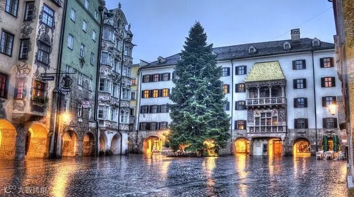 因斯布鲁克 群山环绕的“阿尔卑斯山谷的宝石”,白雪覆盖的山峦,参天的杉树,散落四周的湖泊,随处可见的野生天鹅,风景如画。团友亲临这座中世纪城市,在狭窄的小街上,欣赏哥特风格的楼房鳞次栉比。巴洛克式的大门和文艺复兴式的连拱廊展现出古城的风貌。