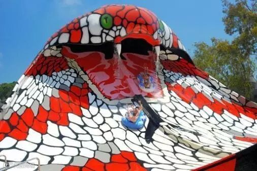 极具霸气的霸气眼镜王蛇,新颖刺激的玩法,游客从高达20米的蛇身急速飞旋而出,瞬间滑入迎面而来眼镜王蛇张开的血盆大口!