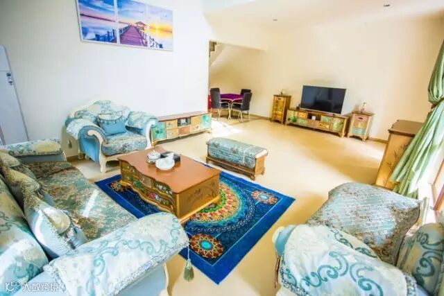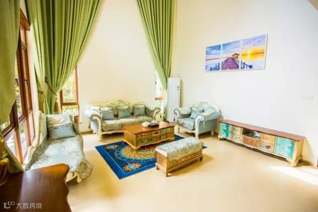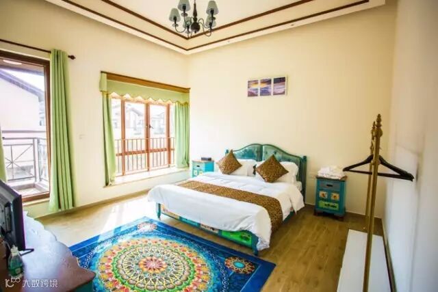从房间的布置和装修就能看出别墅主人的用心~地上铺的地毯点亮了整个房间,色彩缤纷,踏进房间的那一刻就让人心情大好。