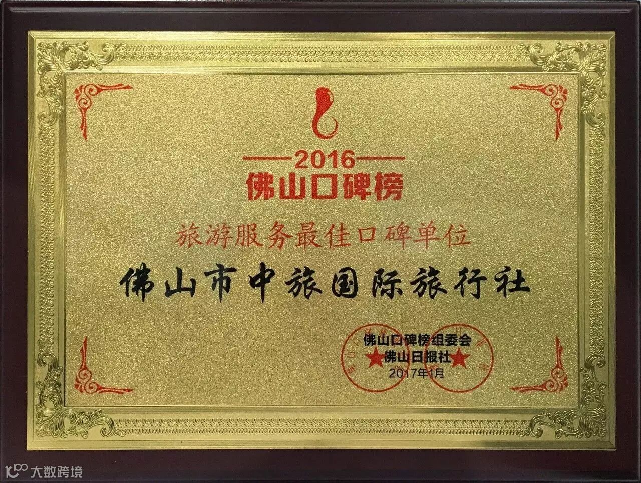 佛山中旅荣获2016佛山口碑榜——