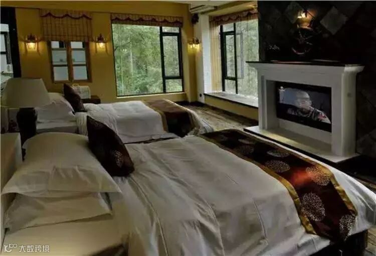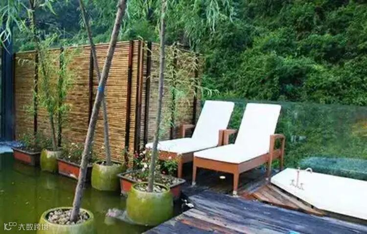 “明月松间照,清泉石上流”,二到四楼的观景房无疑是沦陷在这幅山水画中的骄子,每个房间都有最佳的观景平台,全景观的落地长窗,无论在宽大的棉床上,还是在硕大的浴缸里,足不出户却能轻而易举地听泉观月,坐看山岚云烟。在薄暮时分、山雨初霁时,约一、二知己把盏共话或自斟自饮,翻出时光弄皱的花瓣,剪辑岁月浸染的书笺。回首过往,天高云淡、心如水悠。