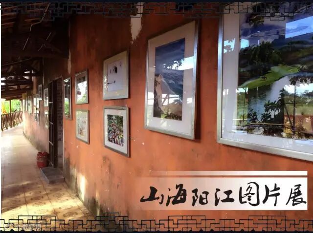 首先迎客的是疍家宋楼,参照《水浒传》中的聚义厅而建,沿着木楼梯登上二楼,可聚友畅聊,也可独自凭栏等风来。穿过疍家宋楼,踏上古朴的疍家连廊,便可观看“山海阳江图片展”,家乡自然美景、风土人情浓缩在一面墙上。