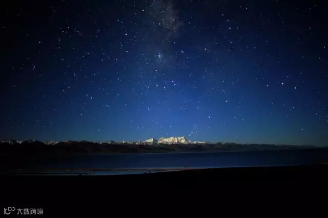 远处的雪山在星星的光辉下还依稀可见,这震撼的场景,会让你不愿停下追逐星空的脚步。