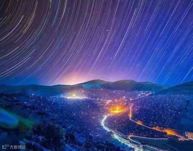 色达佛学院是世界上最大的藏传佛学之一。 这里的僧舍很壮观,连绵数公里的山谷布满了密密麻麻的小木棚屋。在星空下,这片土地更显生机和祥。