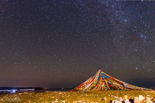 撑上帐篷在青海露营已是足够浪漫的事情了吗,再有夜空相伴,微风吹起五彩经幡飘飘摇摇,简直太完美。
