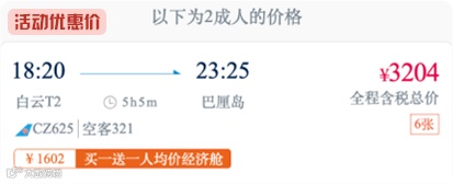 南航实际承运的带有“买一送一”标签