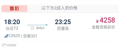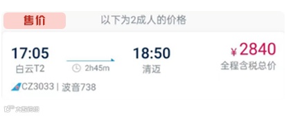 2人往返机票含税价¥2030 !