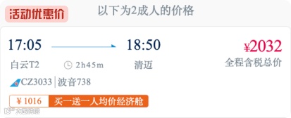 2人广州至清迈往返程机票,