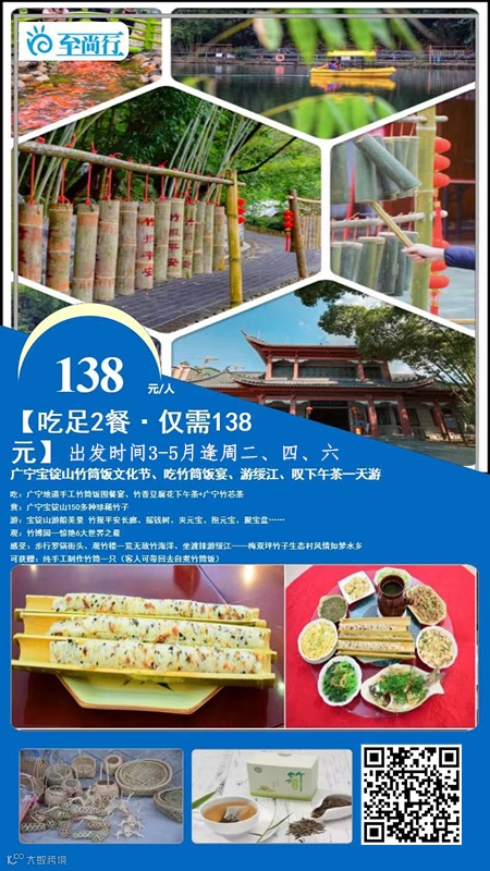 吃:广宁地道手工竹筒饭围餐宴、竹香豆腐花下午茶+广宁竹芯茶