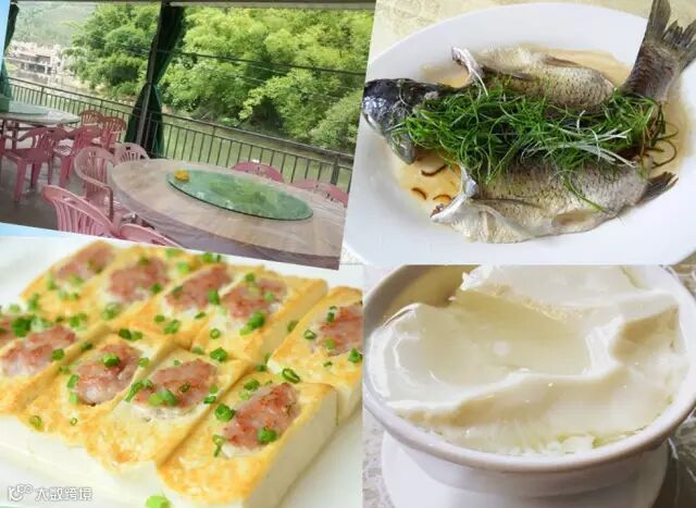 周边餐饮有高端鲍鱼或者农家菜,水库鱼,黑棕鹅;甜点有山水豆腐,选择多,丰俭由人