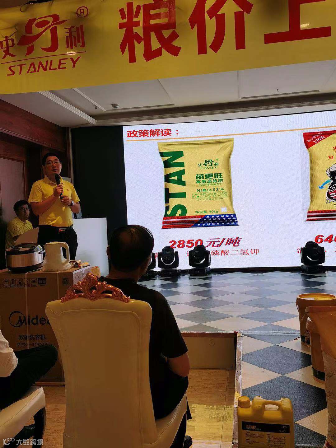会议第一项由史丹利农业集团销售二公司总监张宗礼发表会议致辞,首先张总监代表史丹利农业集团向在百忙之中到场的各位来宾表示热烈的欢迎和衷心的感谢。紧接着向各位来宾介绍史丹利农业集团的发展理念以及发展动作,并着重的介绍了公司成立了亚洲最大的测土实验室—蚯蚓测土实验室,以服务千万种植大户作为自己的使命。张总从国际经济大环境到国内外农资行情,从市场化肥库存较低再到近期粮食行情持续上涨、尿素出口数量持续增长等诸多方面,深入浅出、面面俱到的分析了近期复合肥上涨的原因,并呼吁各位嘉宾抓住机会,最大限度的享受实惠与财富。希望各位种植大户朋友们因为通过选择史丹利,年年有个好收成!