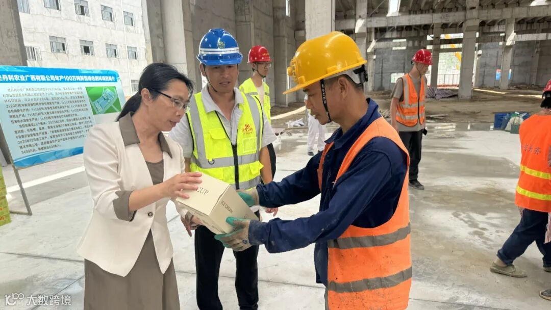 覃塘区总工会党组成员、常务副主席宾琳一行到史丹利广西公司项目现场,为坚守岗位的一线员工送去清凉与关怀