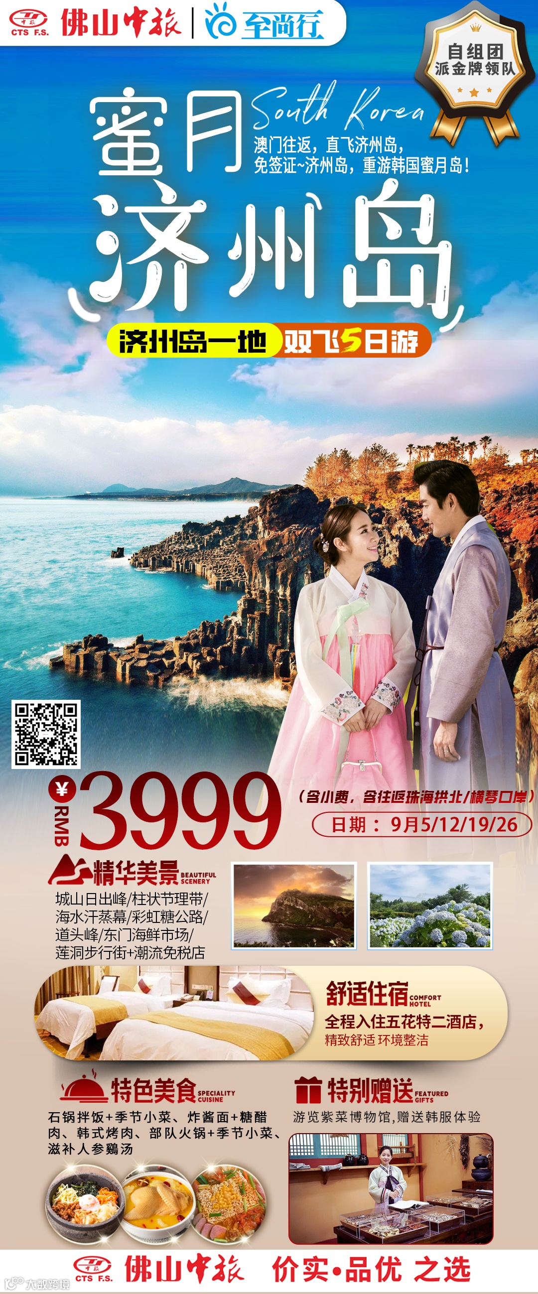 ☆ 【方便快捷】澳门往返,直飞济州岛,免签证~济州岛,重游韩国蜜月岛!