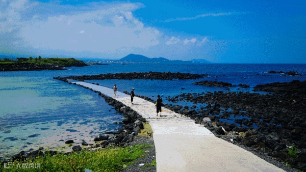 位于济州岛南面,是火山熔岩流流经中文地区前海时冷却后形成的火山岩石柱群。