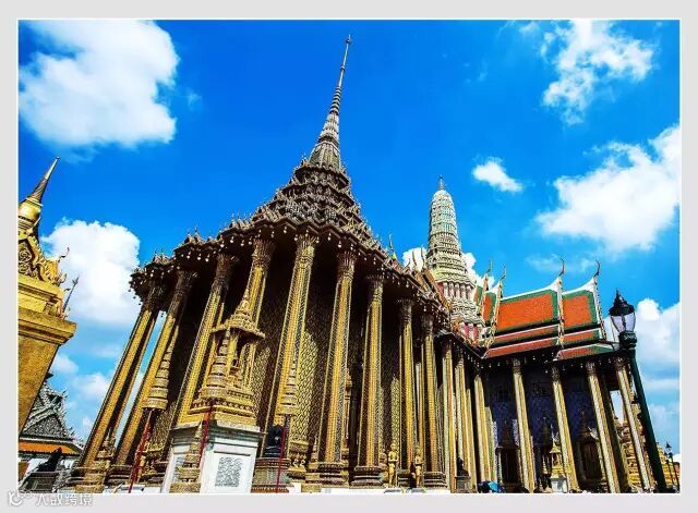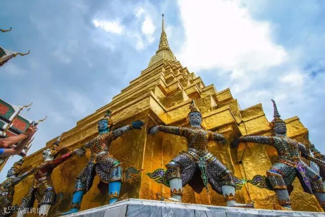 【大皇宫】和【玉佛寺】泰国拉玛王朝迁都曼谷后,仿大城旧皇宫规制,经历代不断扩建,建成了集泰国数百年建筑艺术之大成的大皇宫。建筑群共22座,绿色瓷砖屋脊、紫红色琉璃瓦屋顶、凤头飞檐,屋顶泰式三顶式结构,汇集了绘画、雕刻和装怖艺术的精华;能工巧匠的各种艺术创作、不同时期的文化风格在此一览无余。
