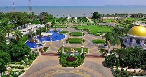 【富贵黄金屋】是泰国芭堤雅第一首富谢国民花重金14亿泰铢建的一个真正富丽堂花的风水宝地的私家花园。庄园里有一纯金望海观音金佛,所以称"富贵黄金屋"。庄园濒海而建,占地18万多平方米。一进庄园大门,便有一只孔雀迎面而来,看到俊男靓女,立即开屏,争奇斗艳。庄园十分气魄,雕梁画栋,无论建筑设计,还是景观雕塑环境,称得上艺术精品,美不胜收,说是庄园,简直就是一座宫殿。来此欣赏望海观音,让你体验有钱人的奢华生活,沾沾首富财运。这个庄园也是十多年前红遍东南亚的青春偶像剧《流星花园》的外景取景地。