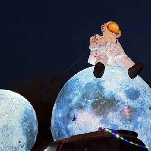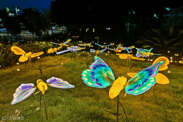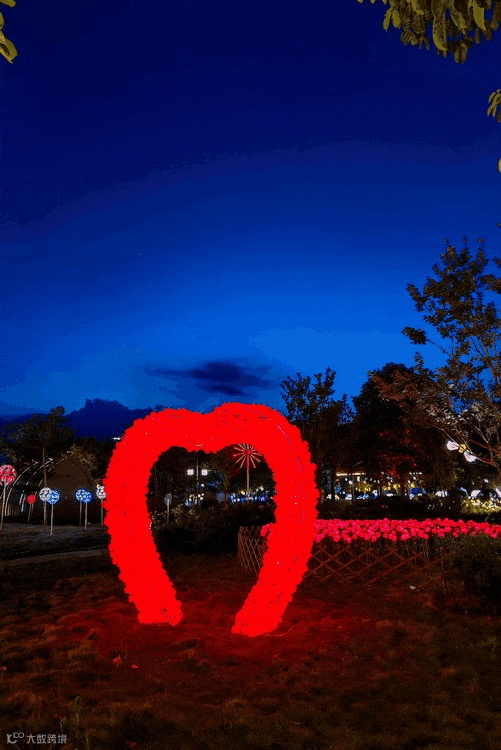 到晚上,还可以在草坪上欣赏到一场奇幻灯光秀