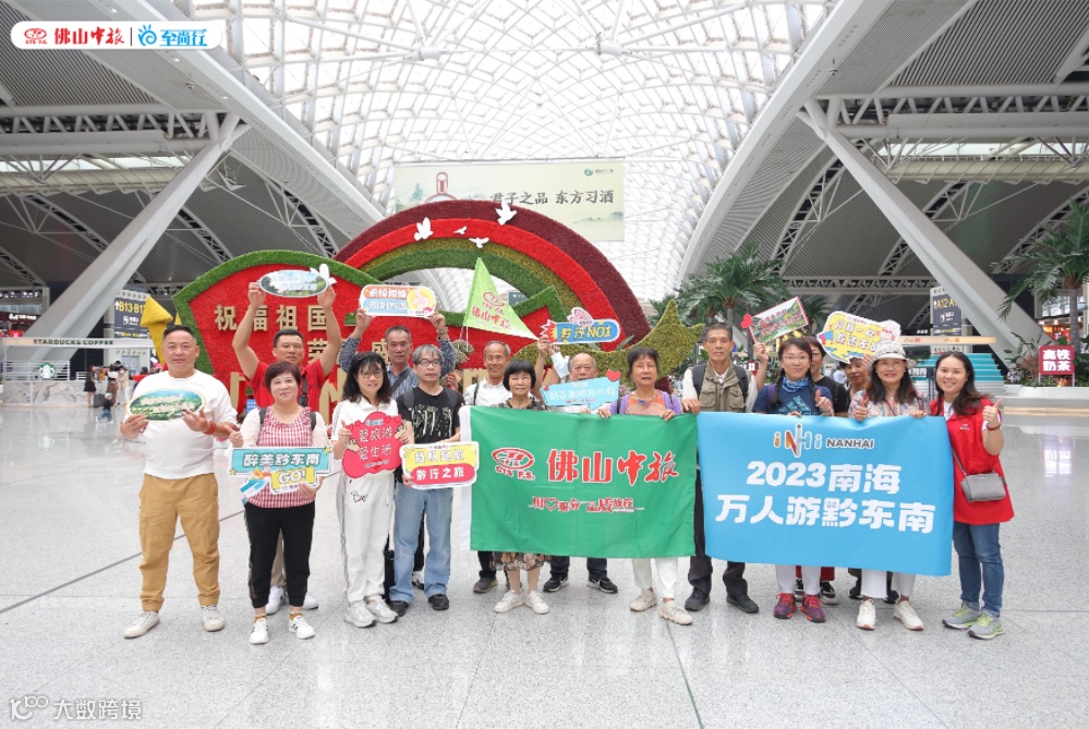 10月18日上午,南海区文化广电旅游体育局发展股副股长许雪花及产业发展股金延婷出席“佛黔一家亲·畅游黔东南”首发仪式,珠江时报记者采访【黔至尚】团友出游前激动的心情,共同宣布【黔至尚】正式出发!