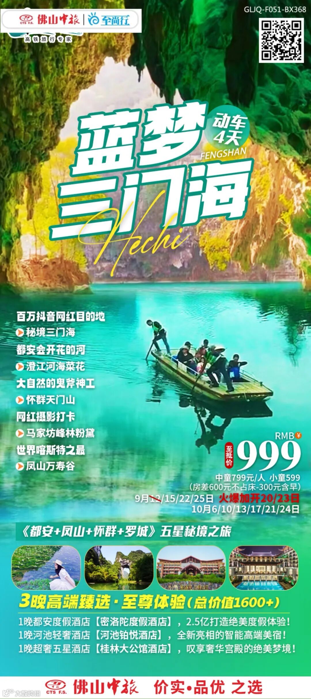 都安澄江河“一条会开花的河“、巴马秘境•“世界七大奇景”三门海、世界溶洞之最•凤山万寿谷、怀群天门山•剑江风光、于成龙公园、马家坊峰林粉黛、
