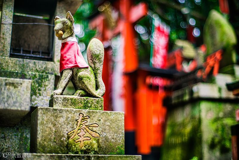 伏见稻荷大社坐落在京都南部的稻荷山,是日本3万座稻荷神社的总本宫。奉稻荷大神为祭神,白狐是神使,因而在境内随处可见狐狸元素。鸟居则是人们作为祈愿的谢礼捐献,自江户时代奉纳伊始,说整座山中多达万基也不为过。沿着参道蔓延而上,甚为壮观。