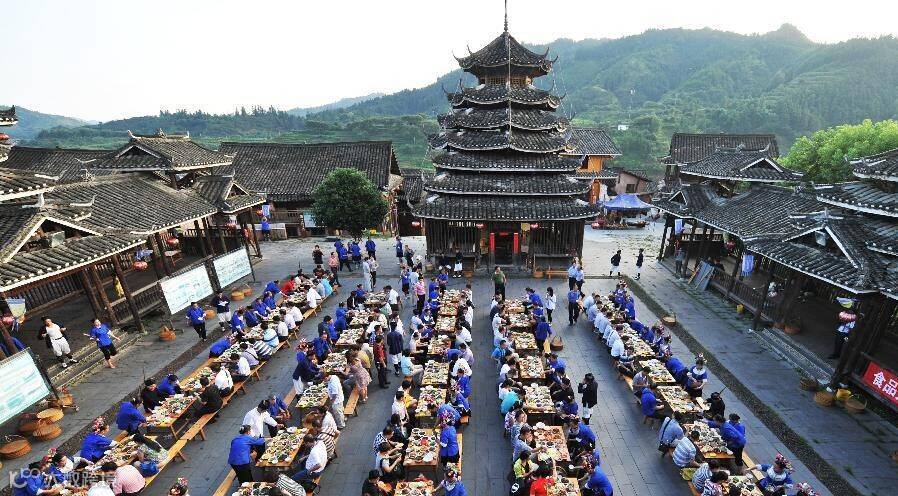 侗寨风味宴,品尝舌尖上的侗族美食!独家安排三江最高礼遇•价值 60 元/人的侗族百家宴!