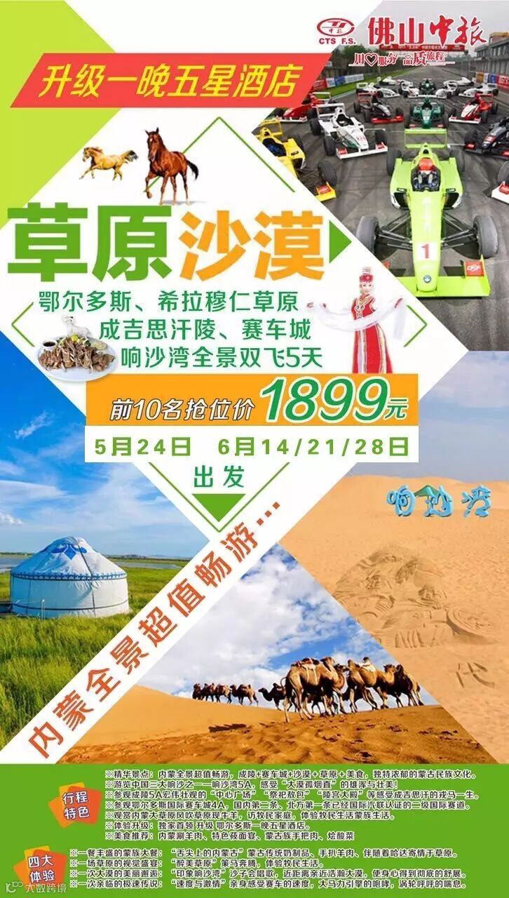 导读:进入官网立即报名吧!2016年鄂尔多斯全景双飞五日游●行程特色精华景点:※内蒙畅游全景超值游,成陵+赛车城+