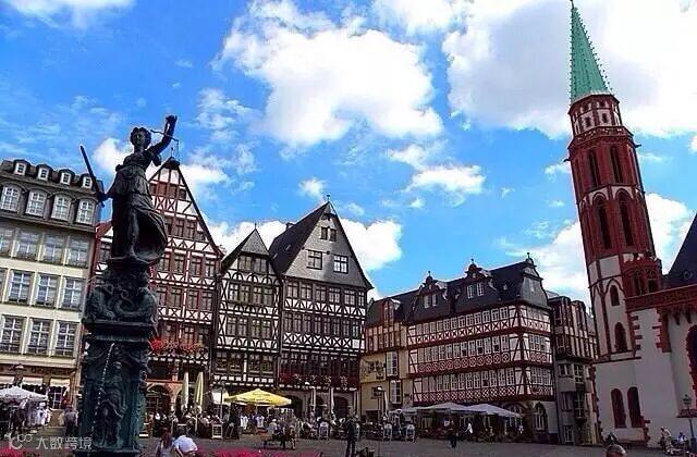 位于法兰克福旧市政厅罗马广场中央,正义女神又称公正女神,女神面向市政厅,左手持象征公正、正义的天平,右手持利剑象征法律的威严,这形象也成了“法律维护公正、打击罪恶”的象征。