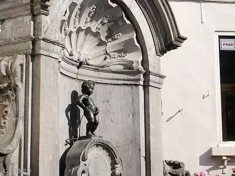比利时首都布鲁塞尔的市标,小于连(又称“撒尿小孩雕像”、“尿尿小童”)。大名叫“布鲁塞尔第一公民”像,建于1619年,是雕塑大师杰罗姆挪斯克诺的作品,雕像仅高50厘米,到布鲁塞尔必定拜访的人物。