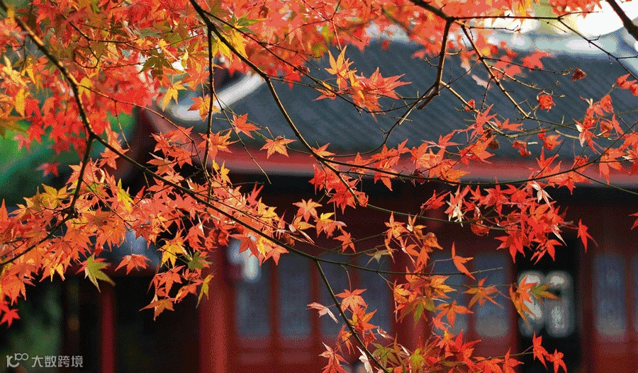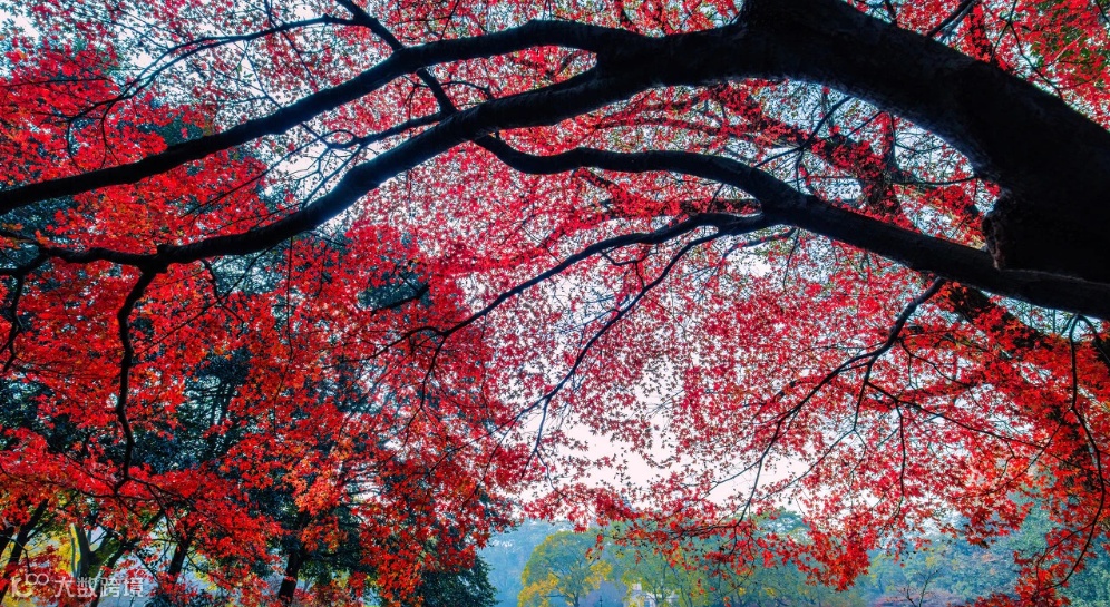 邻峰众壑燃丹妆,绿树红枫扮媚娘