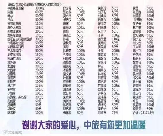病魔无情人有情!公司在得知此消息后立即启动慈善救助基金,并向广大员工发出慈善捐款倡议,现已筹得慈善捐助资金总额为15121.5元。