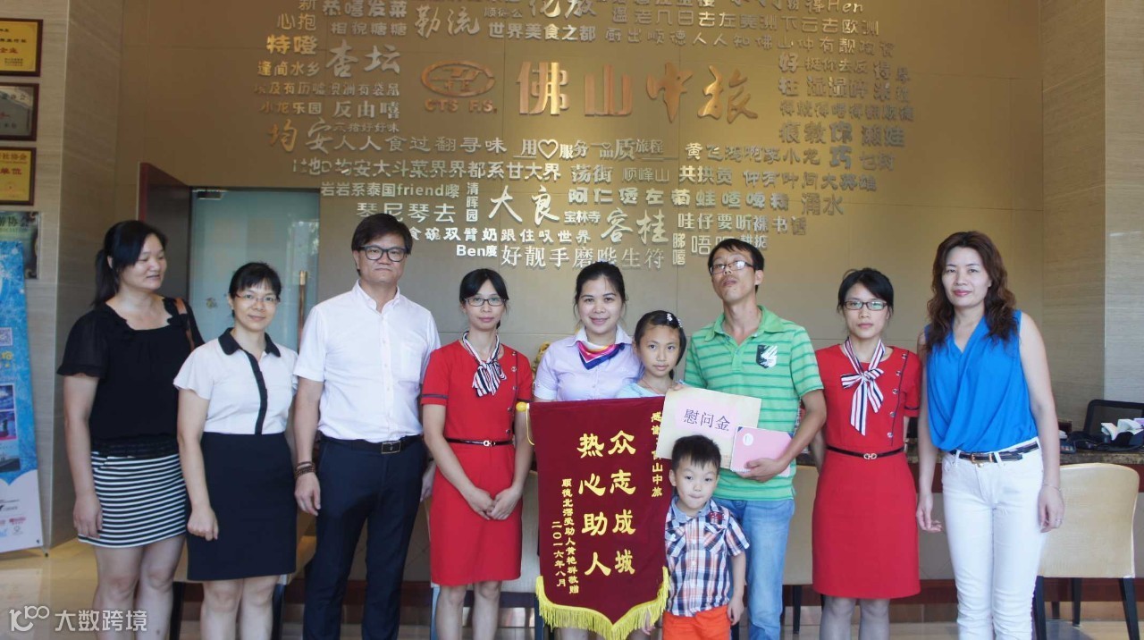 今天下午,佛山中旅叶汉彬董事总经理亲自把慰问金交给冼先生,并衷心祝愿冼太太能够早日康复!