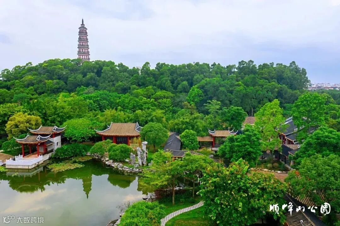 顺峰山公园,顺德“新十景”之一,位于佛山市顺德新城区西北部太平山麓,距离区行政中心约3公里,是集旅游、休闲、娱乐为一体的现代化旅游景区。园区内有公园牌坊、青云湖、神步山、青龙阁等众多景点。 顺峰山公园巧妙利用自然空间以及旧寨塔、青云塔等历史古迹,依据山势地貌形成了“青山、碧水、一寺、两湖、两塔”的自然与人文景观格局。