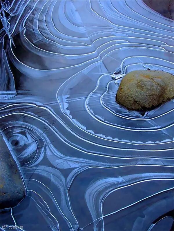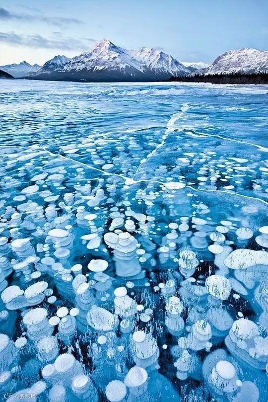 蓝色的湖下,个个水泡似凝结的花蕾,冰存了芬芳。而那皑皑白雪下的块块蓝冰,在阳光下晶莹得摄人心魄。