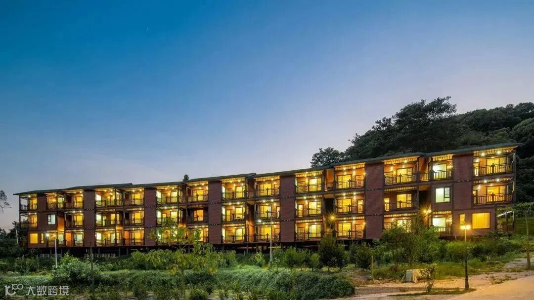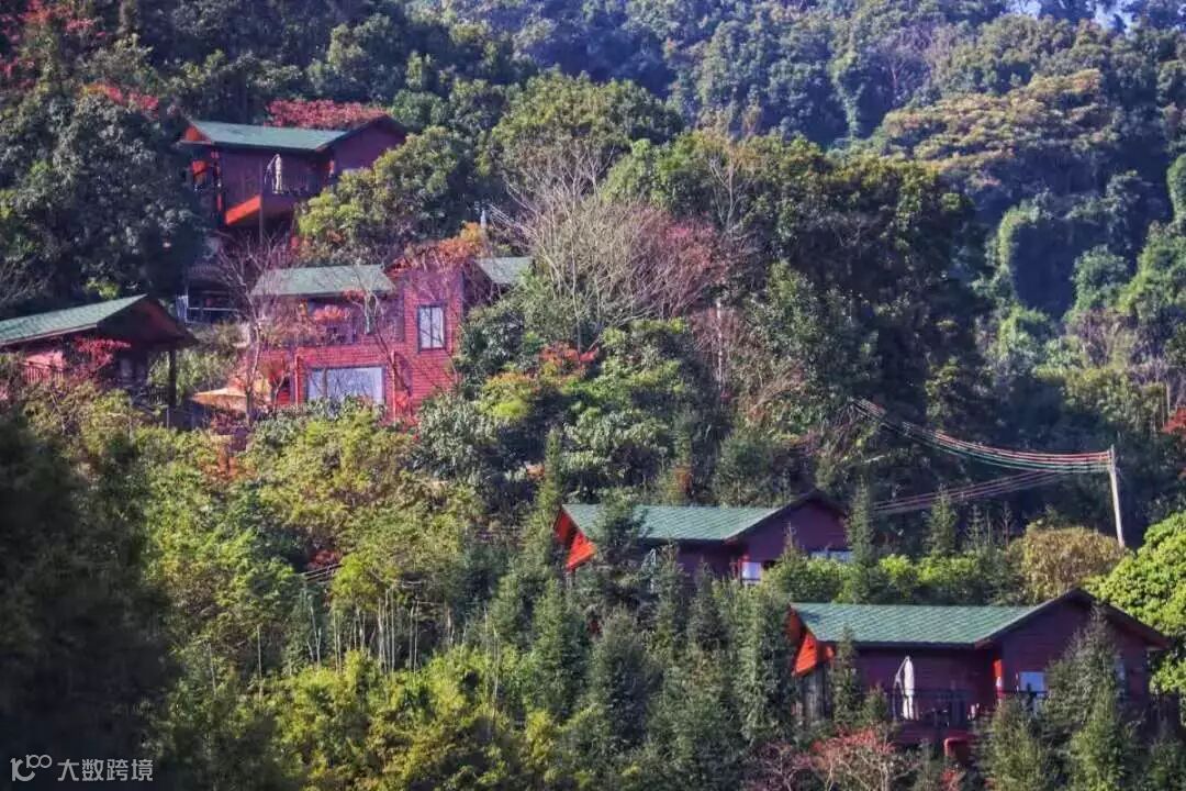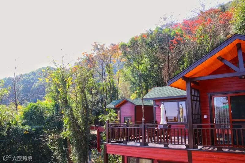 木屋别墅错落有致地穿插在半山上,