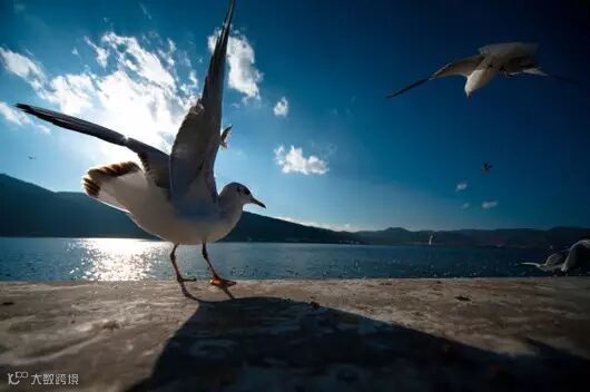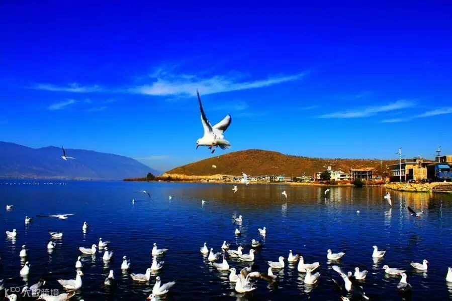 前往滇池大坝观海鸥,每年冬天有成千上万只红嘴鸥从西伯利亚飞来,来到昆明过冬,第二年3-4月,它们才离开昆明。