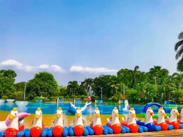 泳道中有火烈鸟、独角兽、香蕉船、橡皮艇等