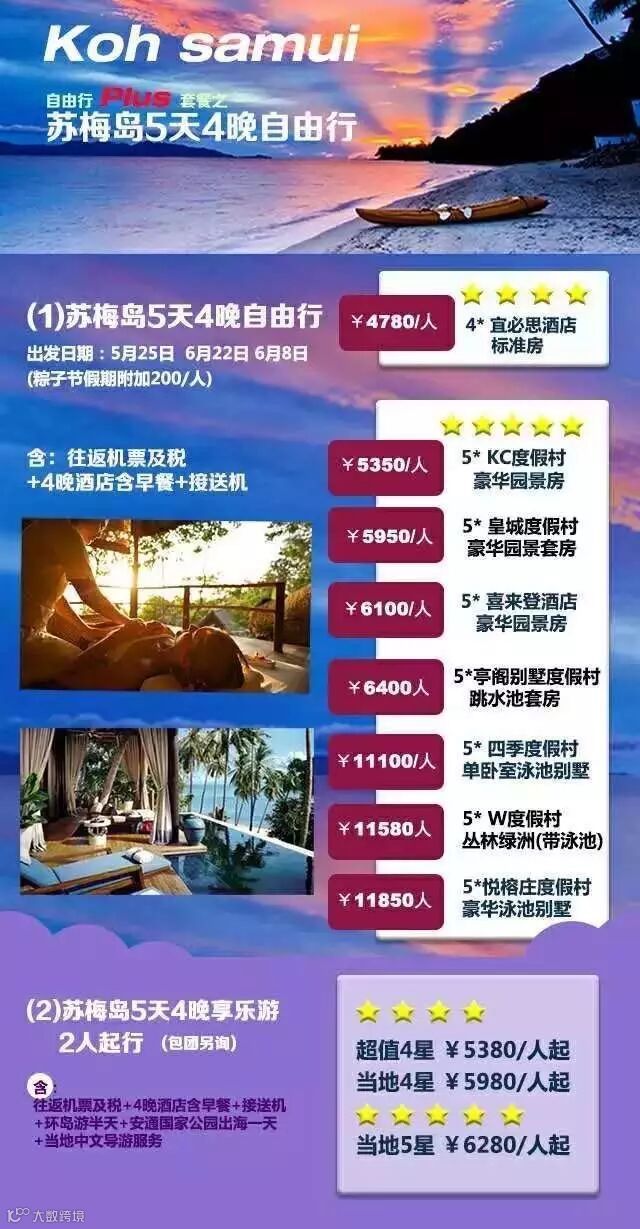 苏梅岛位于泰国湾的苏梅岛是全国第三大岛,周围有80个大小岛屿,但多无人居住。椰树业是岛上重要的经济来源之一,苏梅岛也因此赢得了“椰林海岛”的美名。与旅游业发展已较成熟的普吉相比,苏梅岛保留了更多自然淳朴的气息,也以其独有的魅力吸引着全球各地的游客。苏梅岛上拥有众多细软沙滩、美丽佛寺和丛林瀑布,乘船到周边岛屿享受原始自然的热带风光也是不错的选择。