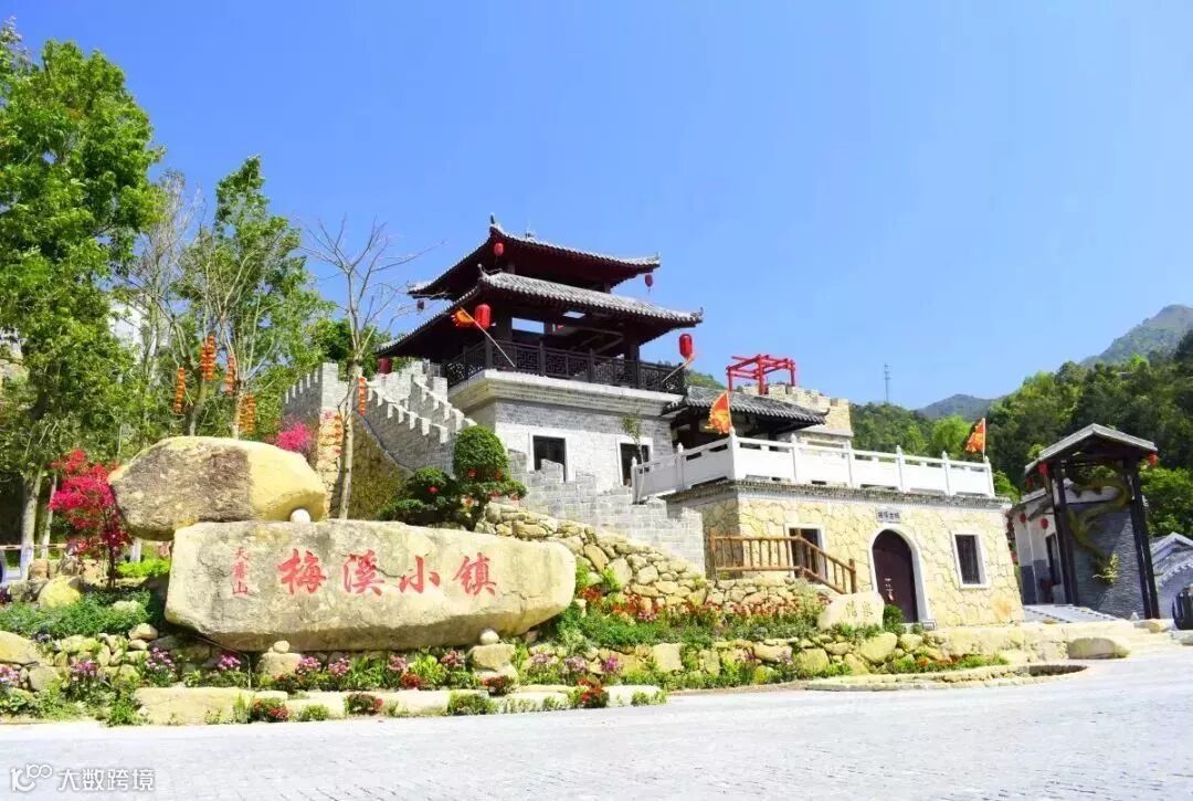 天露山梅溪小镇因拥有梅林、溪流而得名。分为古城特产区、南药体验区、禅修财神区、南药销售区和食住玩乐区这五大功能分区。
