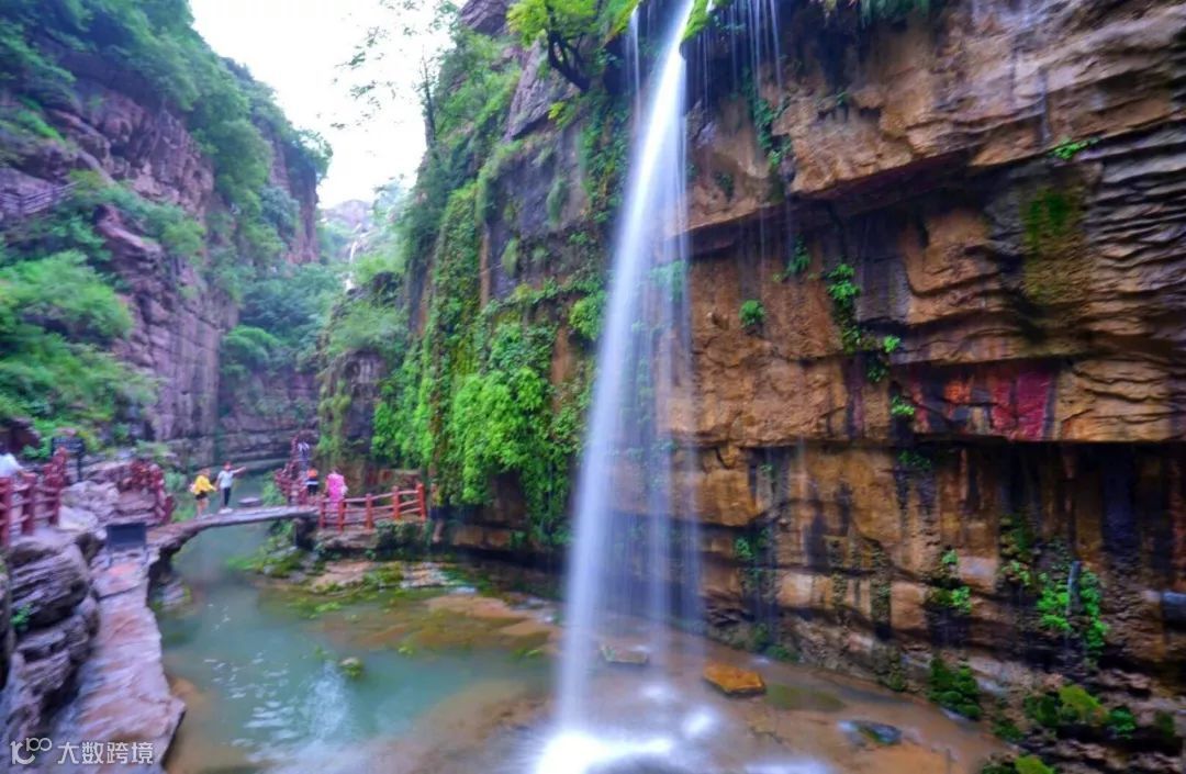 风光旖旎,景色秀丽的万仙山位于太行山南麓,至峰顶可远眺黄河,俯瞰牧野,一览逶迤群山。万仙山汇聚百里太行赤岩绝壁的精华,赤红色的悬崖高越百米。飞瀑、洞穴、老树、古寨、石墙、石街、石房子组成一个个鲜亮的景点。