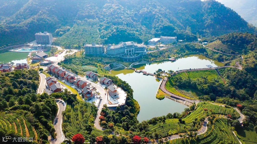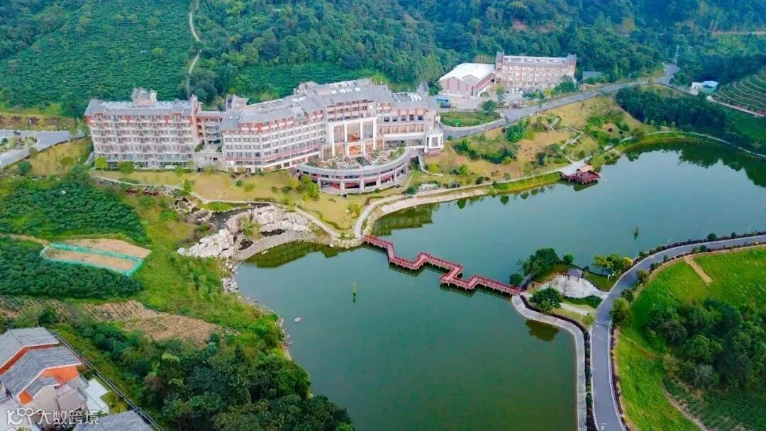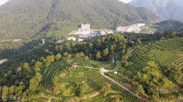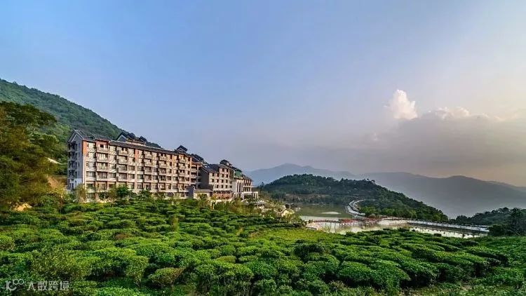 象窝山的漫山茶园及湖泊美景中