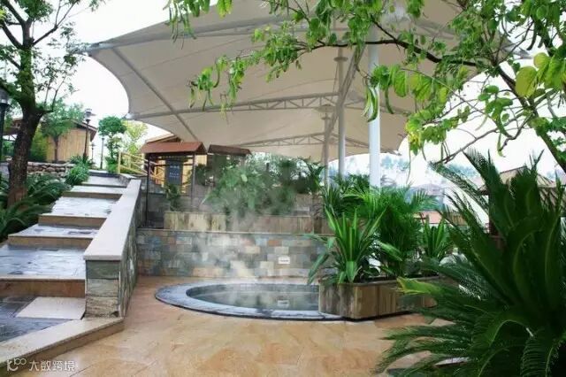温泉占地10,000余平方米,拥有SPA池、美容池、中药池、养生池、鱼疗池、童趣池40余个及地热廊、蛋香池、轻食吧等,各类温泉池镶嵌在峡谷和半山之中,与其独具特色的功能和别出心裁的装修相衬托,让你身、心、灵得以彻底放松,犹如置身世外桃源。