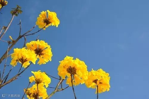 黄花风铃花语是“感谢”,常说喜欢此花的人会是一个知恩图报的人,别人给你的恩惠,都会铭记在心里。也有人说,春天里的爱叫黄风铃,你看到它就会感觉到它似乎在把一生的能量化为花絮,毫不遮掩地向你来展现。它的炫耀,如炽烈的爱情宣言。它的夺目,大有尽一春,拼一树芳华之势。